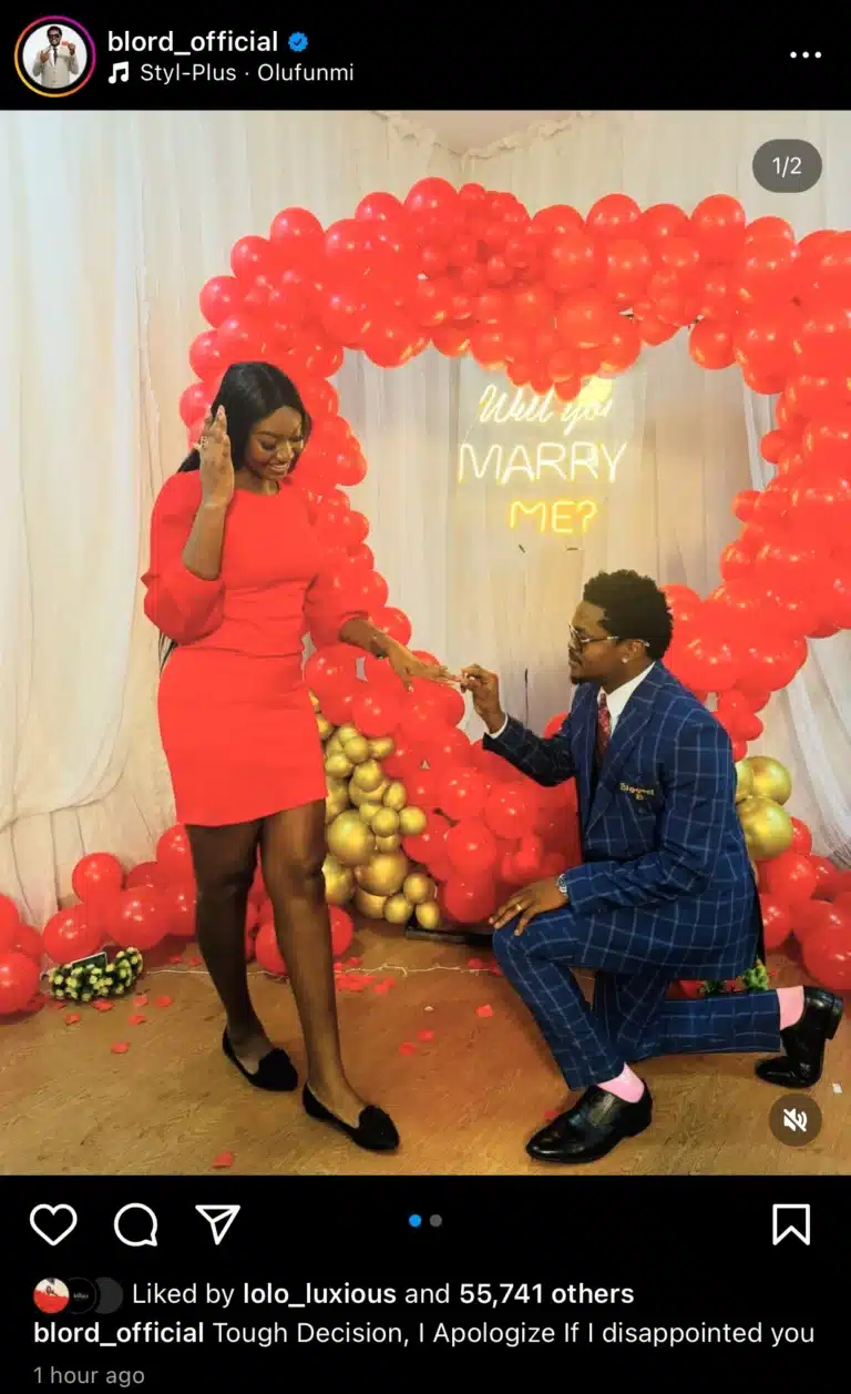 Nigerian philanthropist and businessman, BLord shakes the internet as he is captured proposing to another woman.